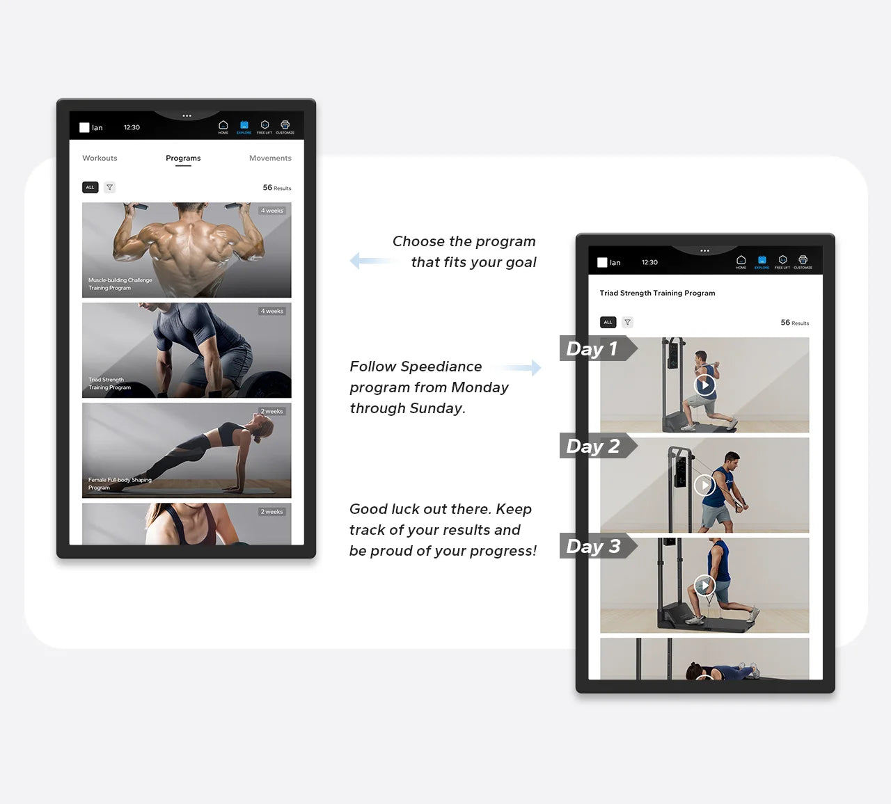 Speediance offers a series of professionally-led training programs that take care of the workout arrangement and provide guidance for you. With Speediance's professional guidance, all you need to do is follow the schedule and stay focused on your everyday training.